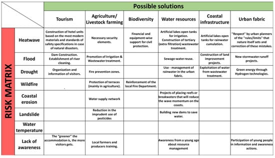 The current study examined the ability of local stakeholders in Sitia to recognize the impacts of climate change and, thus, climate change itself, highlighting the localization and severity of these hazards in vulnerable sectors, as indicated by them, of this small and diverse community. Based on this qualitative risk assessment, the ability of stakeholders to offer potential solutions for the consequences of those occurrences was also examined. The influence on the social dimensions of two of the most imminent climate hazards for the case study of Sitia was also recognized. Moreover, their familiarity with a set of policies from the Regional Climate Change Adaptation Plan of Crete (RCCAPC) [