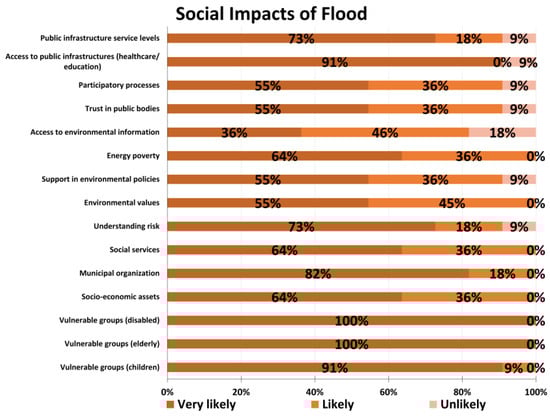 The following bar charts reflect the community’s expectations regarding the social impacts of floods (