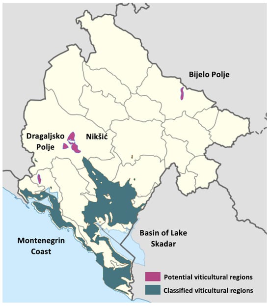 - Savić, S.; Vukotić, M. Viticulture Zoning in Montenegro. Bull. Univ. Agric. Sci. Vet. Med.-Cluj Hortic. 2018, 75, 73. [Google Scholar] [CrossRef]