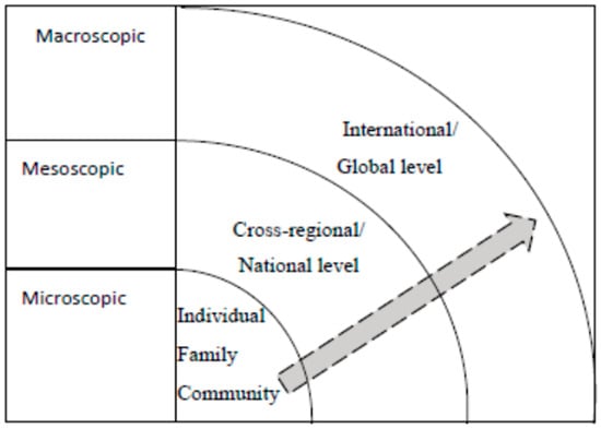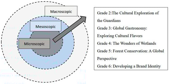 The systems perspective utilizes a linearly expanding concentric circle framework to represent the curriculum network, progressing from the micro-level of individuals and families to the meso-level of regions and cities and finally reaching the macro-level of international collaborations. This design expands the scope of learners’ understanding beyond personal and familial limitations. It also guides curriculum developers in clearly defining the hierarchical structure of the curriculum content, ensuring that implementation progresses from fragmented to holistic and that the content and learning stages advance progressively.