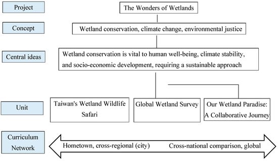 School-based curriculum development in Taiwan has a history spanning over two decades. Supplementing the national curriculum, each grade level is allotted 2–4 flexible periods per week for school-based curriculum, empowering schools and teachers with the autonomy to design curricula tailored to the specific local contexts and backgrounds of their students. This indirectly promotes the opportunity for public schools to cultivate unique identities (Ministry of Education, 2014) [18]. The case school, Green School (pseudonym), a public elementary school, initially focused on developing local curricula as a school-based curriculum. Following the implementation of the 2019 National Curriculum Guidelines and aiming to enhance the school’s competitiveness through a globally focused curriculum, the school sought to internationalize its curriculum and thus began integrating ESD into its curricula. In this context, considering the proximity of a wetland, Green School chose to focus on environmental activities related to SDG 11 and 15, aiming to raise students’ awareness of wetland ecology and biodiversity conservation. As they expanded their curriculum network and collaborated with various stakeholders, they discovered a lack of consensus among different groups regarding wetland conservation. Faced with this conflict, Green School began to shift its perspective and approach to curriculum design.