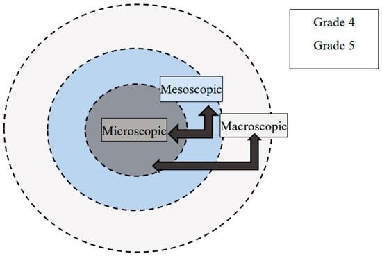 From the perspective of curriculum content elements, effective curriculum development necessitates a clear articulation of concepts, ideas, values, procedures, and methodologies. This clarity establishes the scope of core concepts and content across disciplines, empowering educators to leverage curriculum reform within an empowerment framework. Solely relying on SDG-related education, without this foundational work, risks inadequately embodying the ethos of ESD (Eussen, 2022) [31]. The concept-based learning approach has been further explored by Erickson et al. (2017) [33], who differentiate between macro and micro concepts. They argue that ‘macro concepts provide a breadth of understanding, while micro concepts lay the foundation for depth of understanding’. Erickson (2007) [34] proposed a structure of knowledge, organizing it into five levels from the top down: theory, principal generalizations, concepts, topics, and facts. He posits that theories produce hypotheses and principles, while concepts emphasize synthesis. Topics and facts, however, only reach lower levels of cognitive understanding, reflecting a more traditional approach to curriculum design. Therefore, Erickson recommends that teachers extract concepts from facts and topics to guide their instruction. His primary aim was to develop a conceptual framework that supports the students’ cultivation of conceptual knowledge, requiring teachers to possess the ability to shift between macro and micro concepts to facilitate student learning.