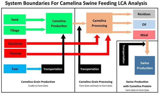 J.T.: investigation (LCA), data collection, writing—original draft. L.J.: investigation (swine production), writing—review and editing. R.G.: investigation (camelina production), writing—review and editing, F.F.: investigation (camelina production), writing—review and editing, Y.L.: project conceptualization and administration, investigation (swine production), writing—review and editing. All authors have read and agreed to the published version of the manuscript.
