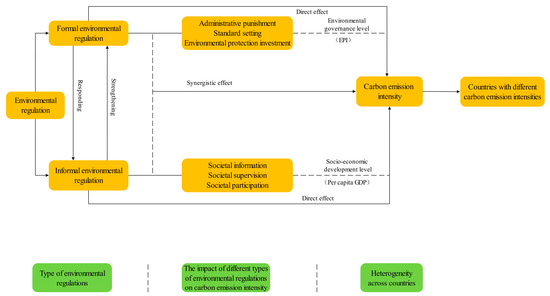 Theoretical analysis framework of environmental regulation affecting carbon intensity.