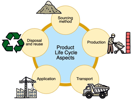 Life Cycle Assessment (LCA) evaluates the environmental impact of materials across their entire life cycle [60]. In the case of perlite, mining can alter landscapes [61,62], and its expansion process requires substantial energy, emitting greenhouse gases and other pollutants [63,65]. Although water used during production is often recycled, transportation still contributes to emissions. However, perlite’s insulating properties can contribute to a reduction in building energy consumption, thereby partially offsetting its environmental impact [66].