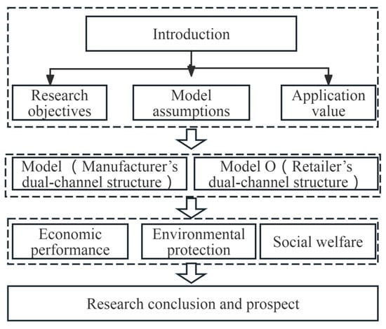 Ghosh et al. [18] identified a channel structure model based on consumers’ environmental-friendly preferences. A dual-channel strategy was found to be beneficial when low-carbon preference was high. Liu et al. [19] further compared the positives and negatives of online channels and offline showrooms and established four Stackelberg game models, finding that a two-part tariff contract is an effective mechanism to align the interests of game participants, thereby facilitating the achievement of Pareto optimization. Zhang et al. [20] discussed the manufacturer’s channel choice within different channel strategies, finding that manufacturer channel preference is influenced by operating costs and competitor channel strategy. Liu et al. [21] constructed a game model considering channel preference under centralised or decentralised decisions. Raising low-carbon subsidies for retailers benefited not only the gamers, but also the government. Zhang et al. [22] conducted research on channel competition and product competition, discovering that the manufacturer’s incursion resulted in a win-lose situation. Zheng et al. [23] attempted to address reverse channel choice and the establishment of coordination mechanisms within a supply chain context. This research shows that a profit-sharing mechanism and price contract could be used to coordinate supply chain. Yan et al. [24] delved into the intricate dynamics between the manufacturer’s encroachment strategy and the retailer’s information-sharing strategy. The manufacturer has the flexibility to set up a direct sales channel to penetrate the end market, while the retailer can choose whether to disclose private information to the manufacturer. Dai et al. [25] constructed a manufacturer-led Stackelberg game model to explore how consumer proportion, reference price effect (RPE), and channel preference coefficient influence the decision-making of the remanufacturing supply chain (RSC) within dual-channel structures.