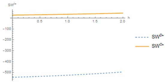 At certain values, comparing the social welfare in both models gives the relationship: .