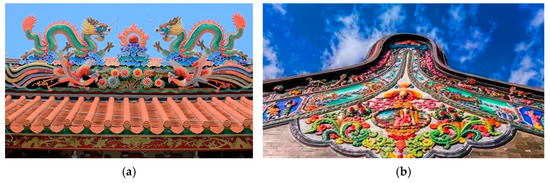 - Cao, Y.; Lu, Y. Analysis on Porcelain Inlay Decoration in Traditional Buildings in Chaozhou. In Proceedings of the 7th International Conference on Arts, Design and Contemporary Education (ICADCE 2021), Moscow, Russia, 25–26 May 2021; Atlantis Press: Dordrecht, The Netherlands, 2021; pp. 111–116. [Google Scholar] [CrossRef]