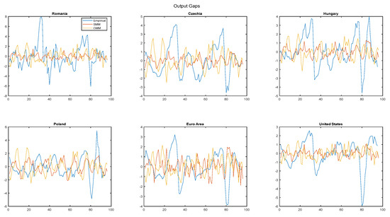 Empirical and model simulations of the output gap.