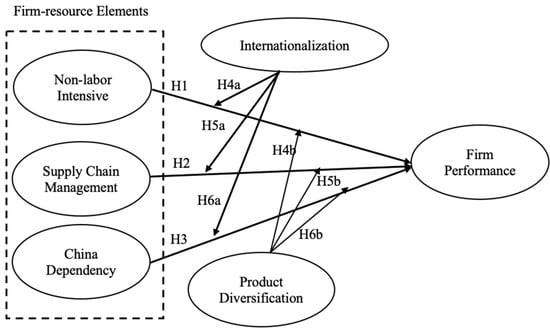 Despite these challenges, many China Taipei firms have demonstrated resilience and an ability to sustain their competitiveness. This paradox presents a compelling research gap: understanding how China Taipei firms strategically navigate these vulnerabilities while maintaining their competitive advantages remains largely unexplored []. According to the current existing research on the global business environment, there is still a notable gap in understanding the specific performance of China Taipei firms []. The existing studies have broadly addressed the effects of various economic and industrial factors, but there is limited empirical evidence on how firm-level factors, such as dependency on China, the non-labor intensity, and supply chain management influence the performance of China Taipei firms []. Additionally, the moderating roles of internationalization and product diversification in this context remain underexplored [,]. This gap is critical given China Taipei’s significant economic ties with China and its reliance on exports, which make its firms particularly vulnerable to global disruptions.