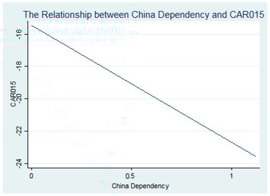 The familiarity of China Taipei’s investors with Chinese markets due to their shared language, culture, and geographic proximity enables them to effectively monitor their firms and respond to economic changes. Conversely, China Taipei’s investors exhibit less confidence in operating in other regions due to differences in the language and legal systems []. Most China Taipei firms have facilitated their international expansion by leveraging their previous experience in China, reducing the amount of information needed when entering new markets []. Therefore, while the high level of dependency on China has typically stimulated the performance of China Taipei companies, the current global political and business environment has turned this previous advantage into a challenge for China Taipei firms’ performance. The following hypothesis is proposed: