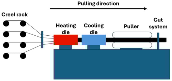 Schematic view of thermoplastic pultrusion.