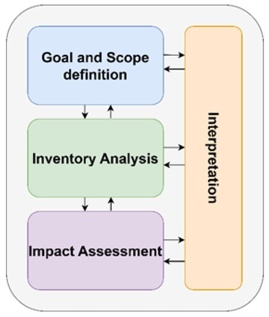 According to ISO 14040 [16] and ISO 14044 standards [17], the life cycle assessment (LCA) framework consists of the following four main parts [18], schematically represented in Figure 4: