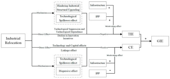 In summary, the impact mechanism of undertaking industrial relocation on green innovation efficiency and its sub-stages is illustrated in Figure 1.
