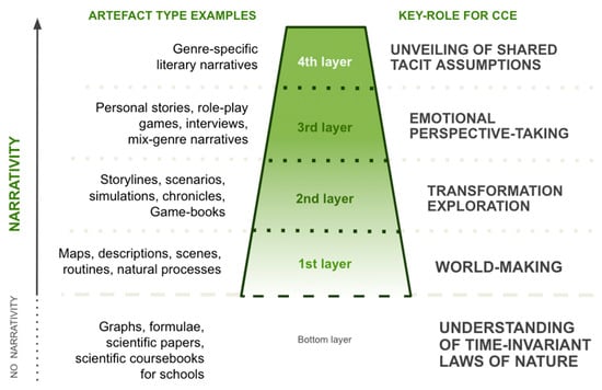 This study provides a novel approach to integrating narratives into CCE by introducing a multi-layered narrativity tool. By moving beyond the traditional view of narratives as mere communication tools, the research reframes narratives as artefacts fostering distinct modes of thinking. This approach not only highlights the unique strengths of narrative thinking but also bridges the cognitive gap between paradigmatic and narrative reasoning.