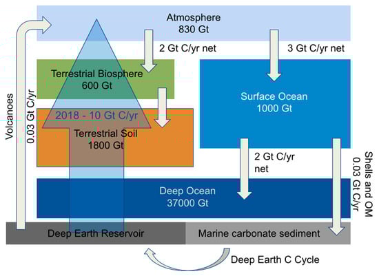 Example of a carbon cycle map. This figure is an example of a CC paradigmatic artefact belonging to the 1st layer of narrativity and strongly linked to the bottom layer through the use of data. Image adapted from [38].