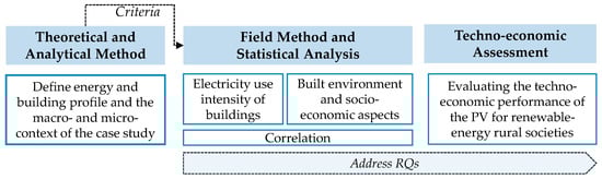 Defining the requirements to apply PV panels according to the regulatory framework and quantifying their economic and technical impacts (Section 3.2.4). Figure 1 visualizes the research design and the methodology.