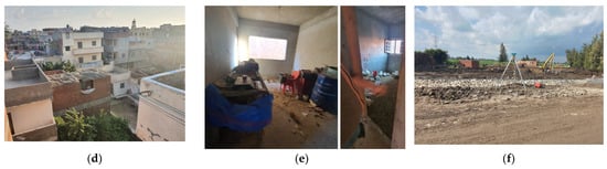 Examples of the built environment of the Lasaifar Albalab rural settlement (images’ source and credit: Ahmed Abouaiana): (a) an inner road 2 m wide, made in the traditional organic fabric; (b) a road of 4 m width inside the traditional fabric, showing the mixed-used buildings (small economic activity on the ground floor); (c) a 6 m width road along with the water body, characterized by linear fabric, usually hosts the social activities like coffee shops; (d) in-between spaces of the residential buildings within the traditional fabric, with the upper roofs being vacant spaces; (e) micro-scale poultry farm inside a vacant dwelling; (f) the process of regenerating the infrastructure of the village within the Decent Life project.