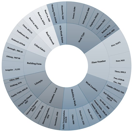 - Socio-economic activities: household size in dwellings, household size in the buildings, if any, household breadwinner’s work type, working as a farmer or not, mobility to work, breadwinner’s work location, lifestyle, and finally, wife’s work status.