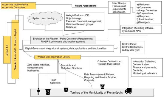 In our scientific and research journey, we had several interactions with and made proposals to local governments, especially in the city of Florianopolis, with the aim of carrying out technical–scientific cooperation with the aim of enabling and supporting the process of building a zero-waste city from development of a digital tool that constitutes a first-order problem in all cities in Brazil, since the entire planning and management process of PMGIRS and waste handling and management are still in the analog state, not meeting the challenges, goals and objectives proposed by the Brazilian guidelines and national laws.