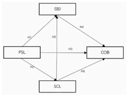 Model The “Social Norms—Subjective Norms—Personal Norms—Carbon Sink Compensation Behavior” pathway model. (PSL = Personal Norms; SBJ = Subjective Norms; SCL = Social Norms; COB = Carbon Offset Behavior).