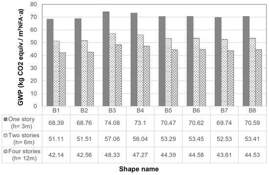 The GWP (kg CO2 equiv./m2NFA·a) of different building shapes.