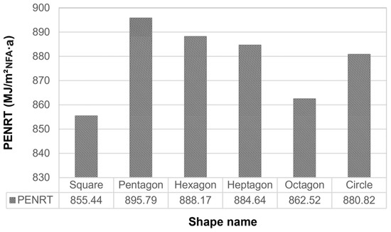 The PENRT (MJ/m2NFA·a) of different building shapes.
