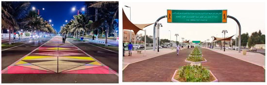 - Addas, A.; Alserayhi, G. Approaches to Improve Streetscape Design in Saudi Arabia. Curr. Urban Stud. 2020, 8, 253–264. [Google Scholar] [CrossRef]