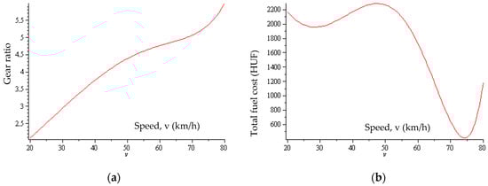 The practical implementation of the latter equation can be seen in Figure 14, where the sum of the functions proportional to the absorbed wheel power and the powertrain loss is shown. The resulting function is a curve proportional to the (effective) power of the engine.