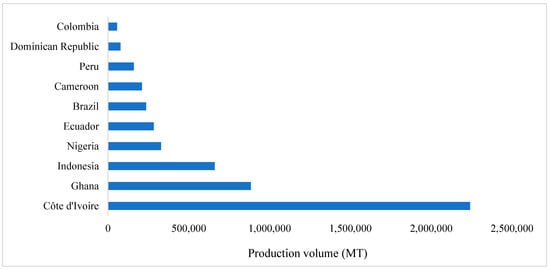Cocoa holds immense global and African significance, playing a crucial role in economies, livelihoods, and food systems. In the 2022/2023 crop year, global cocoa production reached approximately 4.9 million metric tons, with Côte d’Ivoire leading at 2.24 million metric tons, followed by Ghana and Indonesia (Figure 1). The cocoa industry, valued at over USD 130 billion, is facing challenges such as adverse weather, disease outbreaks, and price volatility, leading to record-high cocoa prices. Despite strong demand, these challenges have led some farmers to abandon cocoa cultivation, raising concerns about the industry’s long-term sustainability. Additionally, issues like child labour and deforestation continue to impact cocoa supply chains, prompting efforts toward ethical sourcing and sustainable production.