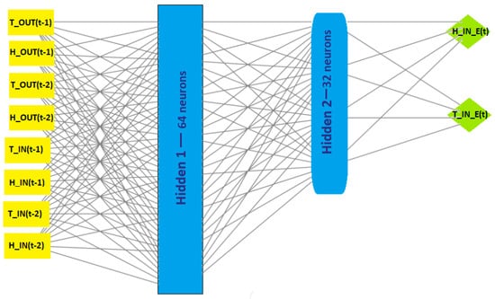 - The output layer consisted of 2 neurons, one for predicting the internal temperature and the other for predicting the internal humidity for the next hour.
