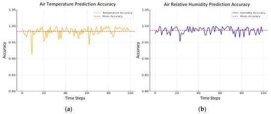 - Mean absolute error (MAE): The MAE was also tracked to assess the model’s performance in terms of the absolute error in the predicted temperature and humidity.