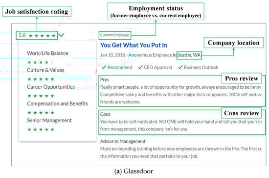 South Korean and American companies have been actively expanding into each other’s markets [16]. Business cooperation and technology exchange between these countries are continuously increasing [17]. Understanding the unique characteristics of the local workforce and working environments is crucial for companies aiming to succeed in these markets. This study aims to address this need by comparing job satisfaction determinants in the IT industries of the United States and South Korea. Specifically, it analyzes pros reviews, cons reviews, employment status (former employee vs. current employee), and overall job satisfaction ratings collected from two prominent employment platforms: Glassdoor.com (accessed on 23 Octobor 2023) in the United States and Jobplanet.com in South Korea.