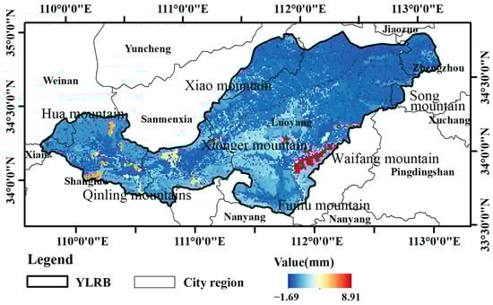 Spatial variation trend of water conservation in the Yiluo River Basin (2003–2023).
