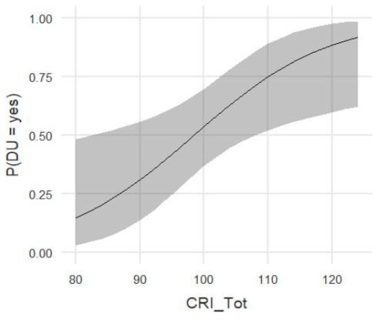 The CRI-q-tot (CRI_Tot) is the final questionnaire score corresponding to the average of the three indices transposed on a scale with a mean of 100 and a standard deviation of 15. In each section, an attempt is made to establish which activities the subject rarely carries out and which activities they carry out with some regularity; in the latter case, it is important to know for how many years. In this way, each subject’s CRI score is estimated based on their age.