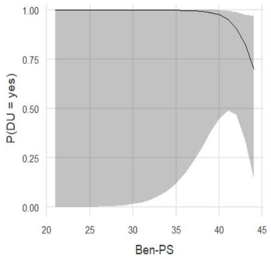 To assess how much the dimensions could be associated, a correlation analysis was conducted. Given the non-normal distribution of the data (Ben-PS W = 0.97, p-value 0.036; Ben-CS W = 0.97, p-value 0.080; Ben-EC W = 0.96, p-value 0.019; DU W = 0.47, p-value < 0.001; SE W = 0.94, p-value <0.001; CRI_S W = 0.93, p-value < 0.001; CRI_Tot W = 0.97, p-value 0.027; Residence W = 0.62, p-value < 0.001), a Spearman correlation coefficient was calculated. The correlation analyses are shown in the tables below (Table 9 and Table 10).