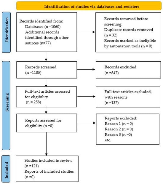 Current review screening flowchart following PRISMA protocol (Source [37]). This work is licensed under CC BY 4.0. To view a copy of this license, visit https://creativecommons.org/licenses/by/4.0/ (accessed on 4 May 2022).