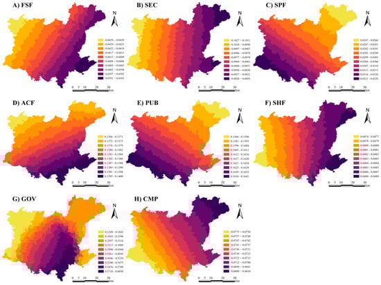 As shown in Figure 4, the effects of FSF, SPF, ACF, and SHF on violent crime exhibit a stable and increasing positive correlation from west to east. FSF facilities in Changsha are primarily located in the eastern areas, such as Furong District and Yuhua District, where commercial activity is high. Financial institutions, such as banks and securities companies, are involved in large-scale financial transactions and are potential targets for robbery. SPF facilities are predominantly found in open public spaces, such as Wuyi Square and Orange Isle, which attract large numbers of tourists and transient populations during holidays. The complex composition of people in these areas renders them susceptible to incidents such as provocation and conflict. Moreover, the management of public spaces is more challenging, and blind spots in patrols and surveillance coverage may create opportunities for criminal activities.