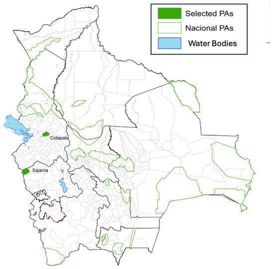 In this study, we surveyed tourists in two PAs, Sajama National Park and Cotapata National Park (Figure 1). The selection of these two PAs was strategically motivated by SERNAP’s focus on areas where fee adjustments could have significant impacts. Additionally, these two areas are interesting from a research perspective due to their distinct characteristics, contrasting management approaches, and growing importance as tourist destinations. Sajama National Park requires adjustment of its existing entrance fee to better align with its increasing influx of international tourists, particularly climbers. On the other hand, Cotapata National Park has consistently attracted high visitation rates from both national and international tourists. Therefore, it is an ideal candidate for implementing an entrance fee scheme for the first time, representing a significant opportunity for income generation given its long-standing appeal as a destination.