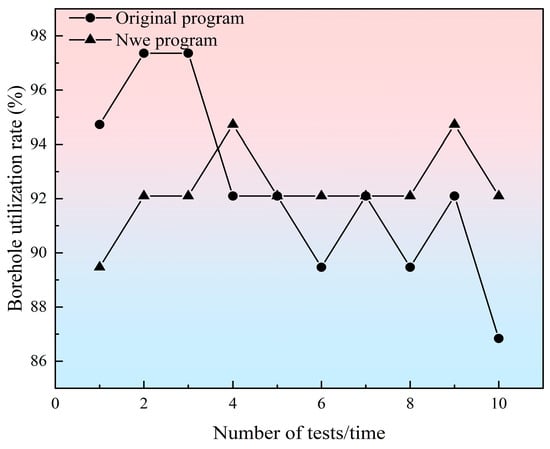 (5) The new program, in the loading due to the lack of detonating cord lap, is less time consuming compared to the original program and can reduce the average loading time by 0.3 h.