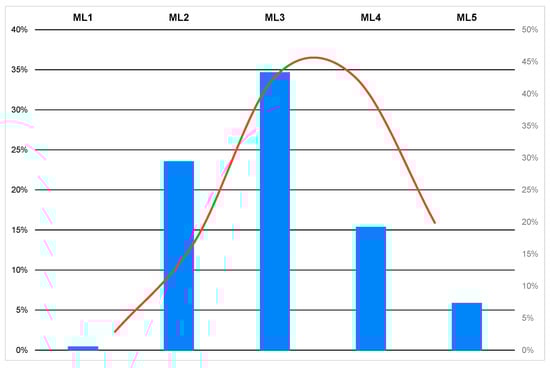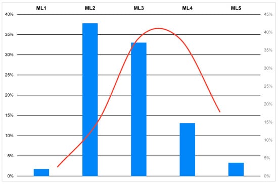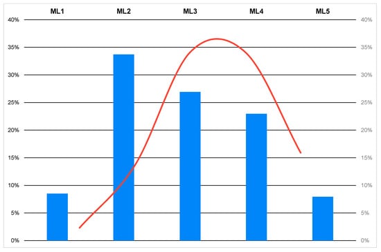 Pullen [] defines an MM as “a structured set of elements that describe the characteristics of effective processes at different stages of development”. Blondiau et al. [] and Proença and Borbinha [] found that MMs are a tool to show the moderate, but systematic development and/or improvement of an organization’s overall skills, processes, structures, or conditions and are used for positioning and benchmarking a company and to guide the company’s transformation from the current state to a future desired one [,,]. In the context of our research, this is particularly relevant, as the sub-goal of family businesses is to grow and sustain the company for generations to come. This is consistent with the tenets of sustainable development, which calls for action today, while thinking about tomorrow. Any development or improvement is only possible when there is clear knowledge of the current situation and a clear vision of the direction of development. Maturity assessment makes it possible to evaluate the current state and indicate where to go next. The main advantages of MMs are their simplicity of application, universality (using qualitative and/or quantitative descriptions of criteria), and evolutionary nature (from gradual progression to the highest level of maturity) [].