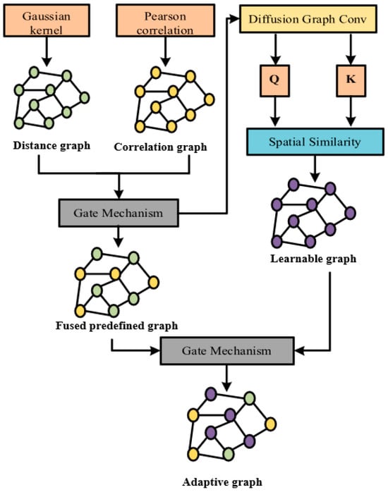 Then, is used as queries to perform spatial similarity with themselves. The process of generating a learnable adjacency matrix can be described as follows: