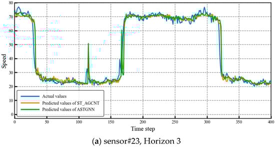 ASTGCN [29]: Attention-based spatial–temporal graph convolutional network, which incorporates a spatiotemporal attention mechanism to capture dynamic spatiotemporal relationships in traffic data.