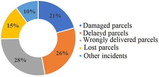 When the investigation began, complaints were divided into categories: complaints about damaged parcels, complaints about delayed parcels, complaints about wrongly delivered parcels, and complaints about other incidents. The full distribution is shown in the image below (see Figure 1).