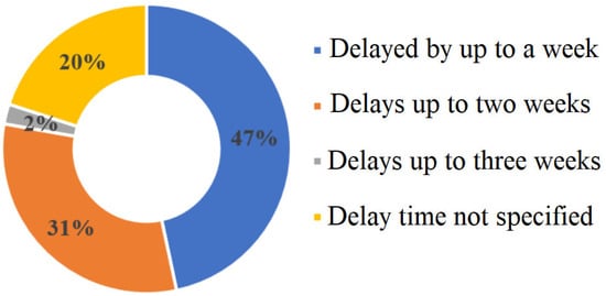 More than half of customers mentioned that their parcels were delivered to a different or further parcel locker than they had indicated when ordering the parcels; such responses were 55%. It was further established that 19% of complaints were about parcels being delivered to a different city or town than indicated, which indicates a low level of attentiveness and incompetence among couriers. 15% of complaints reported that the courier delivered the parcel to the incorrect person or address. The least number of complaints, 11%, was about the parcel being left at the parcel locker when the customer wanted it to be delivered directly to their home. Considering customer complaints about parcels being delivered to the wrong place, it can be stated that most parcels are delivered to the wrong or further parcel locker than desired, which indicates that couriers are inattentive and do not meet the wishes and expectations of customers. We investigated the duration of delays in parcels when examining individual complaints.