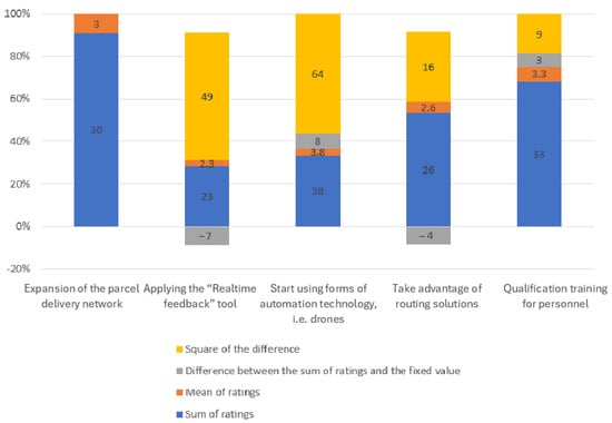 Taking into account the results of the scientific literature analysis, an expert assessment was also conducted, where it was requested to assess which measures would help ensure efficient delivery of parcels (Figure 4).