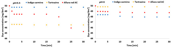 The following supporting information can be downloaded at: https://www.mdpi.com/article/10.3390/su17051908/s1, Figure S1: Colors of dye solutions at a concentration of 50 mg/dm3 (1–Indigo carmine, 2–Tartrazine, 3–Allura red AC); Table S1: The selected parameters of the dyes.