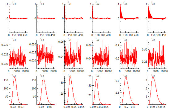 In Equation (9), is a 3-dimensional identity matrix, and are positive definite matrices. The Bayesian method is employed to estimate the model, and the Markov chain Monte Carlo method is used to estimate the posterior values of the parameters. The initial setting of model parameters in this paper is adopted from Nakajima [73], as shown in Equations (10) and (11):