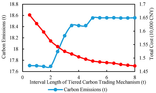 where represents the base price of carbon trading, denotes the unit carbon price growth rate, refers to the carbon emission range, and represents the cost of the tiered carbon trading system.
