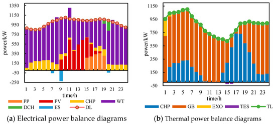 where represents the thermal energy stored in the thermal storage tank during the time period t, and denote the charging and discharging efficiencies of the thermal storage tank, and refer to the total thermal storage power and total heat release power of the tank during the time period t, and represent the thermal storage states of the storage device during the time periods t and t − 1, and denotes the maximum storage capacity of the thermal storage tank.